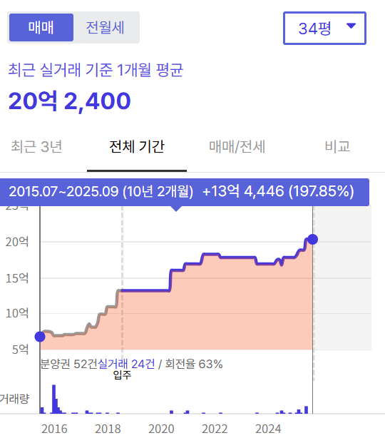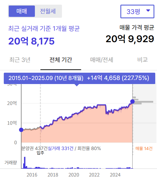 앞서 비교한 단지와 여러 요인 차이가 있겠지만, 훌륭한 가격 상승률 입니다